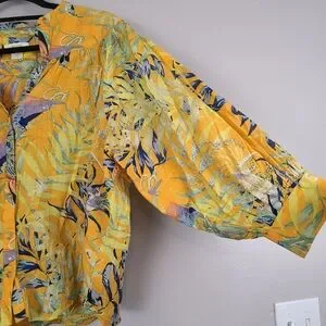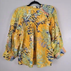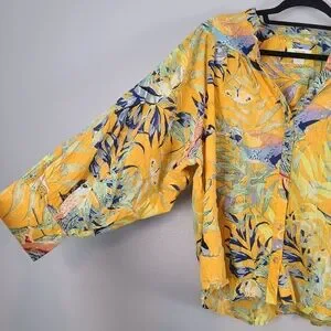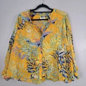 Anthropologie Maeve Yellow Tropical Cotton Lightweight Beach Vacation Buttonup