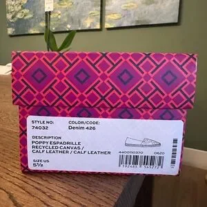 NWT! NEW! Tory Burch Poppy Canvas Leather Mixed Espadrilles -Denim Size US 5.5