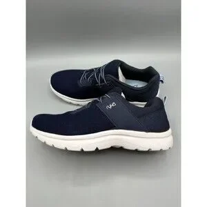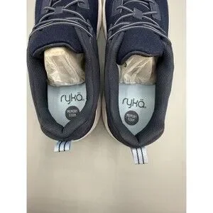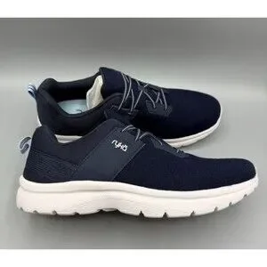 Lightweight Ryka sneakers with breathable upper. Cushioned white sole for all-day comfort. Elastic laces for easy slip-on fit. Subtle logo detailing on the side. New in box.