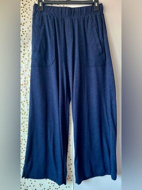 Democracy Dark Navy Ribbed Cropped Wide Leg Lounge Pants size Medium