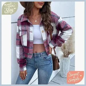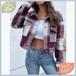 Brand new, never worn, and in flawless condition — this stylish cropped plaid shacket offers a classic, versatile look perfect for daily wear, work, school, or a night out. The fit is standard and comfortable, with a lightweight feel that’s easy to layer.
