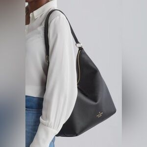 Kate Spade New York Zippy Large Shoulder Bag Black Pebbled Leather NWT