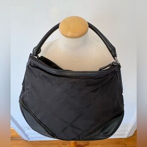 Burberry Black Nova Check Nylon Leather Trim Shoulder Bag