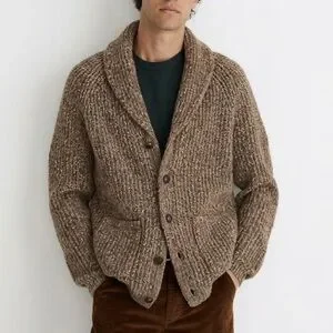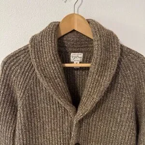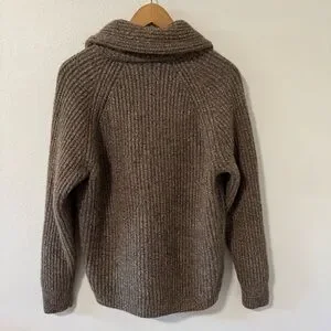 J Crew Rugged Merino Wool Heavyweight Cowl Neck Shawl Cardigan Sweater Brown-M