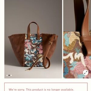Anthropologie Brown Tote with Floral Tapestry Panel
