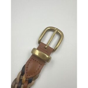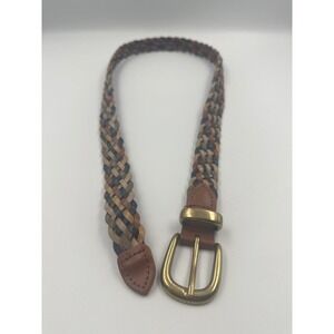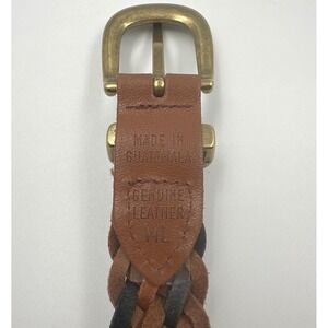 VTG Braided Leather 40" Belt Brown Brass Buckle Guatemala Boho Women's Size ML