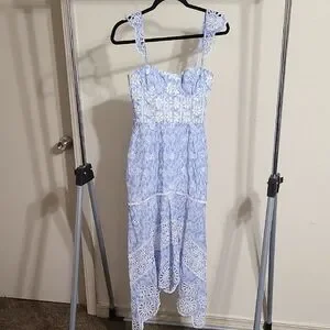Blue Lace Midi Dress with Floral Cutwork Great pre-owned condition