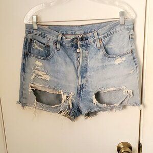 Levi's Premium 501 Button Fly Distressed Shorts Women's Size 30