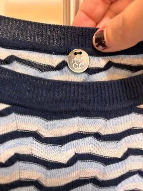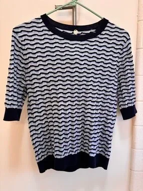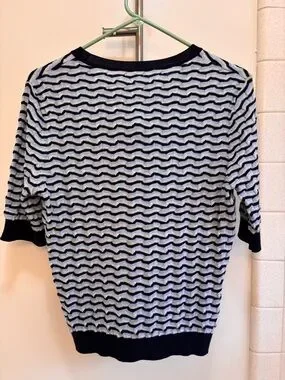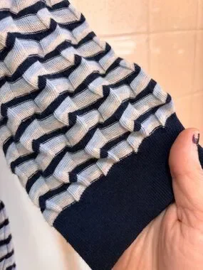 Margaret O'Leary Navy Grey 3D Sweater Boutique Size Medium Quiet Luxury Artsy