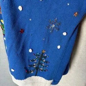 Tags: holiday party, xmas eve, family gathering, festive event, winter fashion, novelty knit, gaudy, playful, seasonal, fun, unique, gift idea, winter layering, comfy