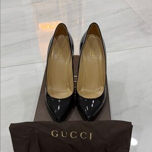 Gucci Women's Black Patent Leather Pointed-Toe stiletto pumps
