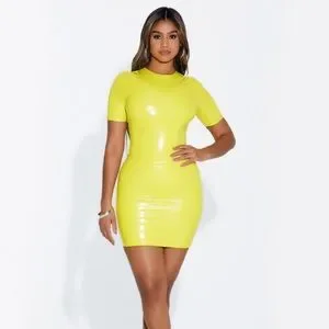 Naked Wardrobe The Vinyl Crew Bodysuit in Chartreuse