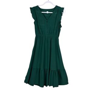 Old Navy Prairie Tiered Dress Size Medium Cottage Peasant Country Green Bohemian