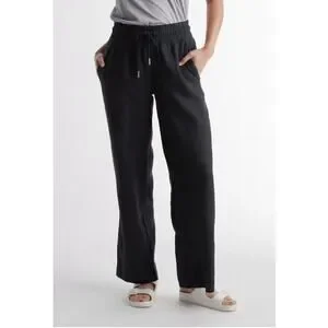 Quince European LInen Wide Leg Pull On Pants in Black in Women's Size Medium.