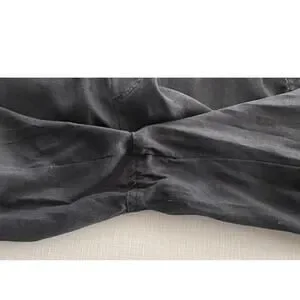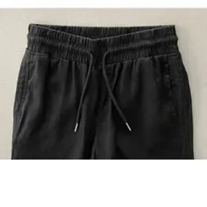 Quince Sz M Wide Leg Linen Pants Black Elastic Breezy Vacation Travel Relaxed