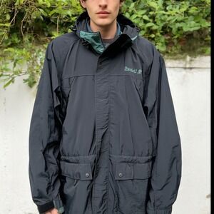 Keywords: Timberland jacket, Weathergear, mens outerwear, waterproof coat, hooded jacket, outdoor gear, travel apparel, fall fashion, rain protection, activewear, windbreaker, durable, comfortable