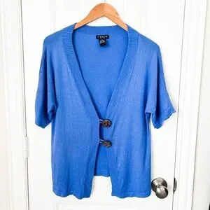 J’Envie New York Short Sleeve Blue Button Cardigan Size Medium