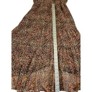 The BB Dakota by Steve Madden Women's Chiffon Midi Dress in Black Ditsy Floral is a stylish and elegant choice for any occasion. The dress features a beautiful floral pattern on chiffon fabric, creating a feminine and feminine look. With a midi length and a flattering silhouette, this dress is perfect for a variety of events. The medium size ensures a comfortable and flattering fit for women. Perfect for those who appreciate a mix of boho and chic styles, this dress is a versatile addition to any wardrobe. There is a tear on the seam of the lining of the dress, please refer to photos. You cannot see it when you wear the dress.