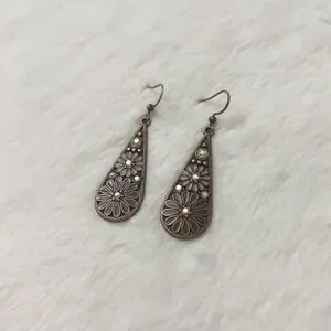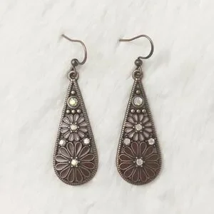 Delicate floral teardrop earrings with pink and rose-gold tones. Sparkling crystal accents add subtle shine. Lightweight design for comfortable all-day wear. Elegant floral detail elevates any outfit.
