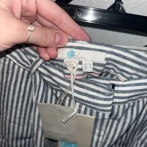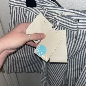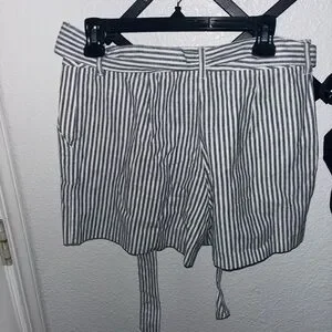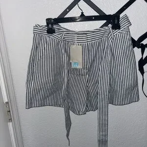 NWT Boden Cora striped linen shorts in blue & white. Lightweight, breathable with a flattering tie waist and pleated front. Perfect for summer, beach, or casual wear. Size US 6. Brand new with tags.