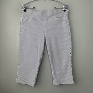 Coastal Capris Pants Signature Slimming Size 10 Petite Blue White Striped Preppy