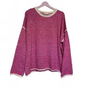 JODIFL Heathered Hot Pink & Cream Sweater with Ragland Back Center Seam | Large