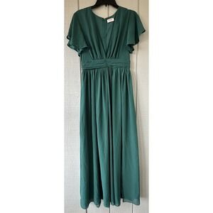 Showpo Dress Womens 6 Green Maxi Flutter Sleeve V Neck Ruched Waist Formal Gown