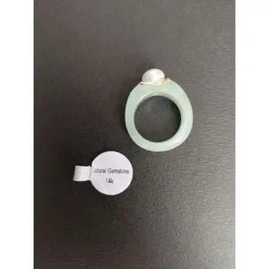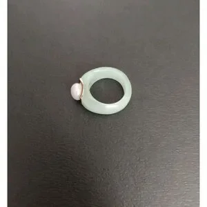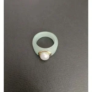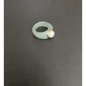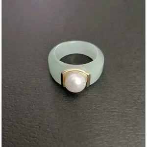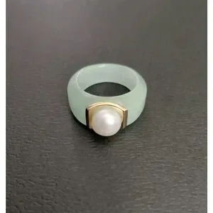 Jade Pearl and 14k Gold Accent Ring Size 6 Brand New.