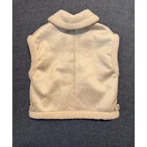 NWT And Now This Heavy Sherpa Lined Cream collared Vest w/buckles Med Oversized