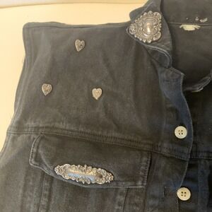The product is a black women's jacket in size medium. It does not have a brand, but it is described as being nice and in perfect condition. This jacket is perfect for any woman looking for a stylish and versatile outerwear option in a classic black color. It can be easily paired with any outfit to add a touch of sophistication to one's wardrobe.
