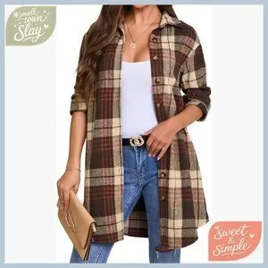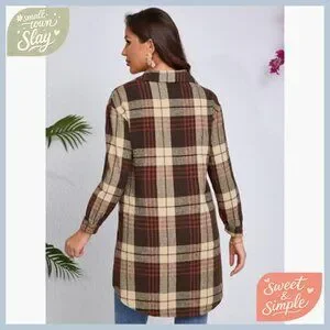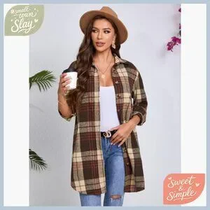 Women's Flannel Button-Down Shirt Long Sleeve Loose Fit Plaid Top