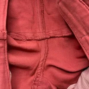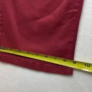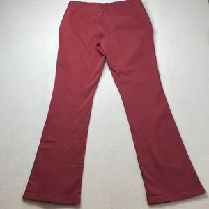 Classic red flare jeans designed for everyday wear. Soft stretch fabric provides comfortable movement. Mid-rise waist with easy pull-on styling. Versatile red color pairs well with casual and dressy tops. VERY GOOD PREOWNED CONDITION 54 COTTON, 33 LYOCELL, 11 POLYESTER, 2 SPANDEX