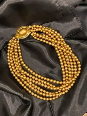 Vintage Carolee statement necklace featuring stunning multi-strand gold-tone faux pearls ✨