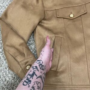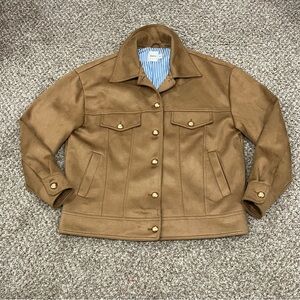 Anthropologie Maeve brown tan suede feel jacket coat with gold buttons - labeled size small - good condition