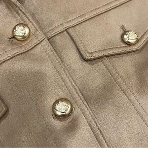 Anthropologie Maeve tan suede feel coat with gold buttons