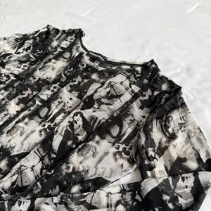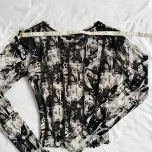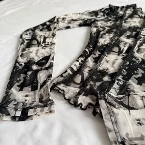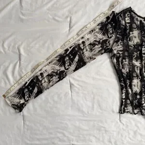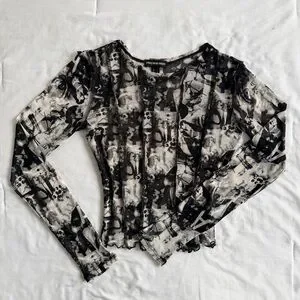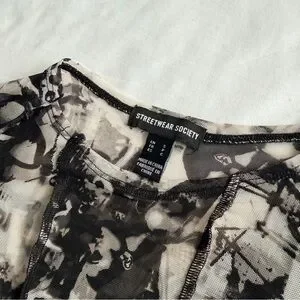 Streetwear Society Black & White Abstract Mesh Long Sleeve Top