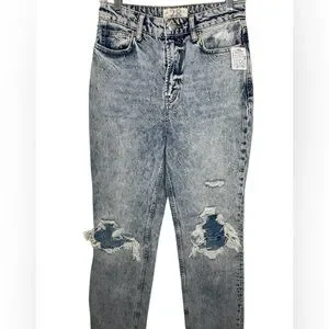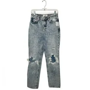NWT We The Free My Own Lane Jeans Size 28 In Indigo Straight Leg Distressed Denim.