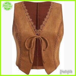 Brand new, never worn, and in flawless condition — this stylish sleeveless vest offers an asymmetrical, statement look perfect for casual wear, street style, or a night out. The faux suede fabric is sleek and the tie-front closure allows for a customizable fit.
