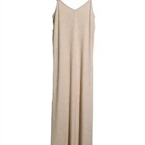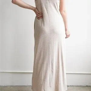 Carly Jean Los Angeles Oatmeal Heather Maxi Slip Dress WITH POCKETS