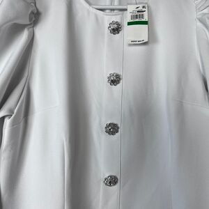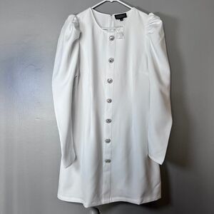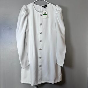 Danielle Bernstein Puff Sleeve Dress L NWT $89 Crystal Button Mini Cocktail