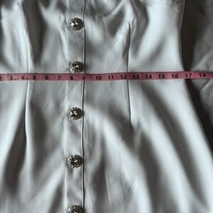 Elevate your wardrobe with this stunning Danielle Bernstein mini dress! This dress features elegant puff sleeves and eye-catching crystal button details, perfect for a cocktail party or special occasion.