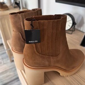 Dolce Vita Tan Suede Chelsea Block Heel Boots