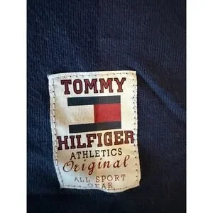 Vintage Tommy Hilfiger Tommy Girl navy blue tank top featuring the iconic flag logo and 'tommy girl' script on the chest. This sleeveless cotton shirt includes a 'Tommy Hilfiger Athletics Original All Sport Gear' patch at the lower hem, offering a classic 90s aesthetic. Crafted from 100% cotton, it provides a comfortable fit for casual wear or athletic activities.