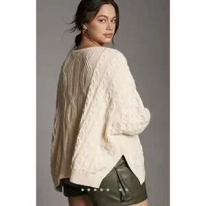 Anthropologie Maeve Oversized Cable Sweater Size XL Preppy Fisherman Academia
