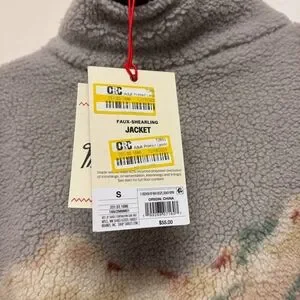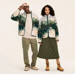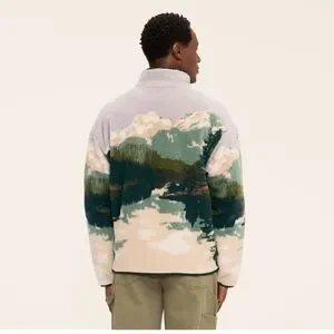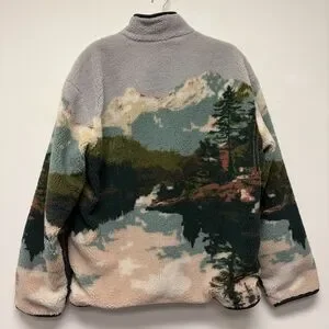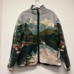 Warm teddy jacket with a nature-inspired design. Features a zip closure. Ideal for outdoor adventures.