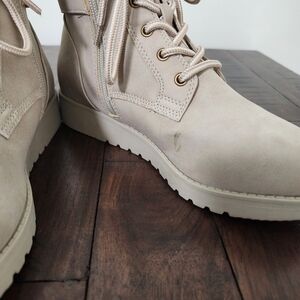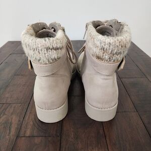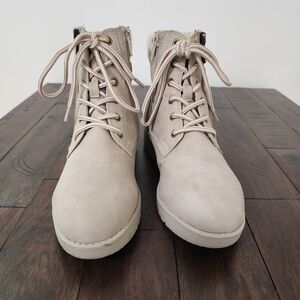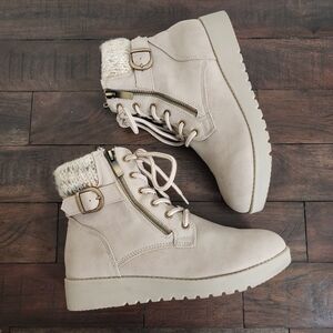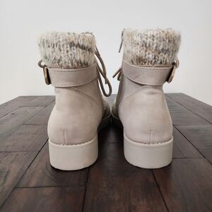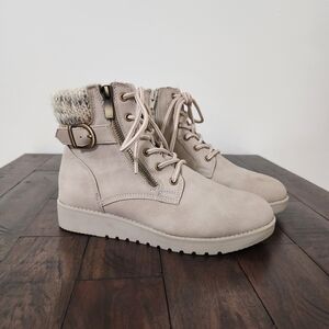 St. John's Bay Frampton Taupe Lace-up Knit Cuff Buckle Boots Sz 7 Classic Casual