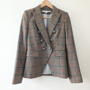 Veronica Beard Miller Plaid Wool Houndstooth Dickey Jacket Blazer Size 2 Celeb