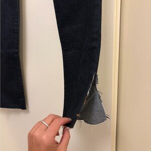 PLEASE READ High-rise silhouette with a straight leg with slits. **there is some pretty bad fraying at the bottom from trying to cut shown in photos**