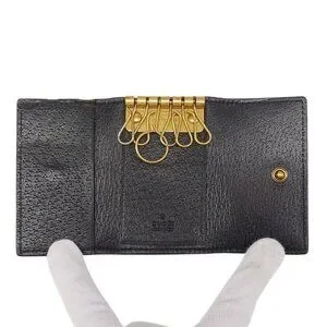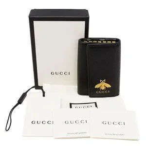 Gucci Key Case Unisex Brand Animalier Leather Black 523683 6 Key Case Bee Stylish Small Adult