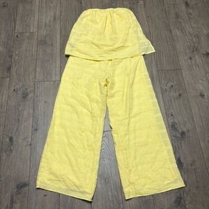 Butter yellow floral lace eyelet preppy strapless jumpsuit medium romper new